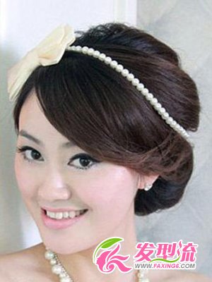 灿烂完美的笑容以及新娘子大大有神的眼睛搭配有着珍珠以及丝绸蝴蝶打造的发饰,让新娘子看上去娇俏甜美,简约不是风范的新娘发型给人端庄的惊艳感,搭配雍容华贵的珍珠饰品更加的高贵啦!