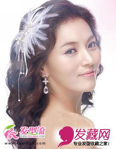 这款新娘发型很适合现代人所追求的简单的时尚,自然的中长卷发,线条清晰有质感,简单素色的发饰轻盈有活力,展现浪漫唯美。