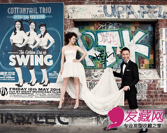 搭配小礼服似的婚纱很显时尚气息,洁白的头纱做成花朵发饰更显轻盈灵动之美。短款的婚纱更是夏季新娘们的必备款,修出修长美腿的同是更显清凉。