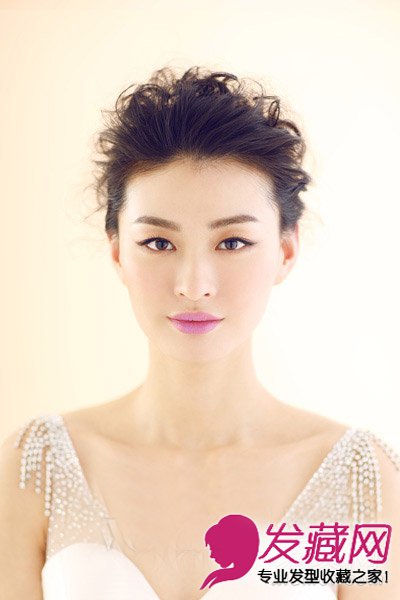 简洁的露额盘发发型,清爽甜美,极具韩式特色,同时也很是贵气的一款发型。