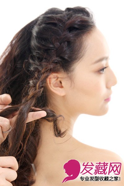 1、首先将长发分成上下两部分,然后对上面的开始编麻花辫。一直编到底。