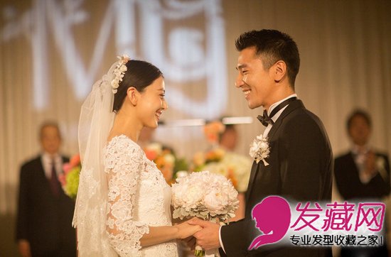高圆圆赵又廷婚礼 花朵装饰的中分新娘发型(4)