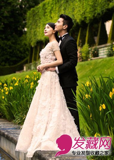 高圆圆赵又廷婚礼 花朵装饰的中分新娘发型(5)