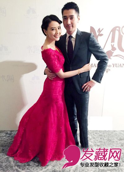 高圆圆赵又廷婚礼 花朵装饰的中分新娘发型(6)