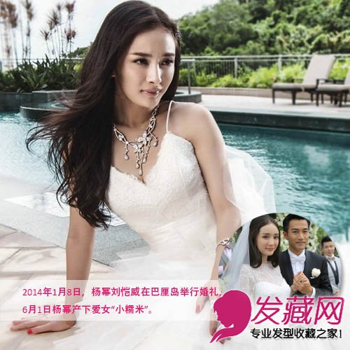 高圆圆赵又廷婚礼 花朵装饰的中分新娘发型