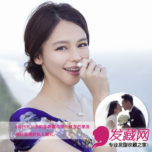高圆圆赵又廷婚礼 花朵装饰的中分新娘发型