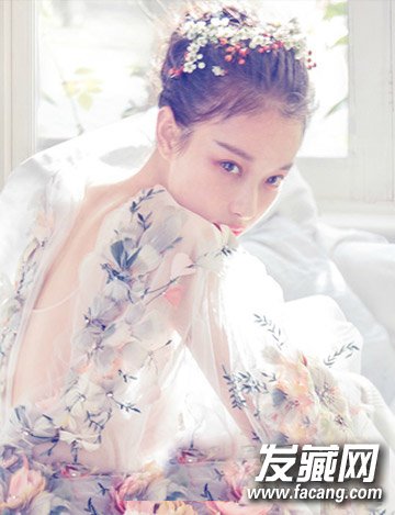 倪妮最新花瓣写真 示范森系新娘盘发(3)