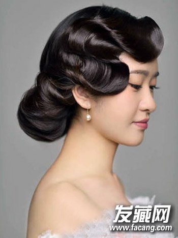 复古范儿十足的韩式水波纹烫卷发盘发,适合轻熟女打理的一款新娘