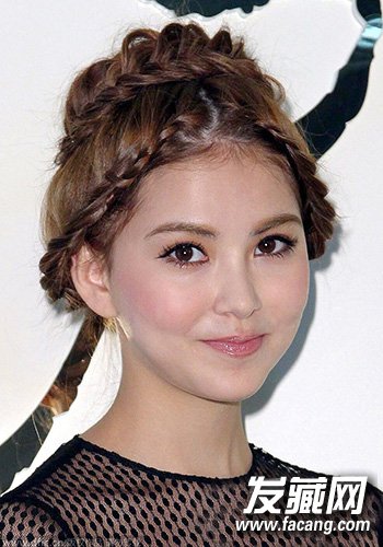 ,整体以麻花辫为主,盘旋缠绕在整个头部,蜿蜒崎岖,带些双层编发的精致感,在单一的盘发上加如这一点点小心意,再配上甜美的笑容简直要融化到心里去了。