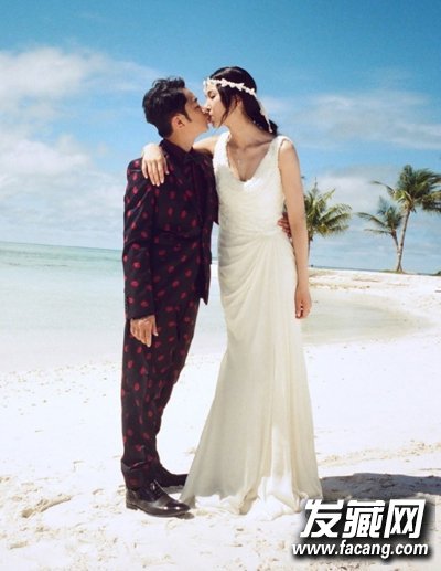 日前王祖蓝婚纱照正式曝光,婚礼预演时晒出的婚纱照很是唯美, 新年一袭白色礼服搭配洁白的缎带发饰,扎个气质低马尾,顿时化身希腊女神,王祖蓝一身印花西装也很是喜庆。