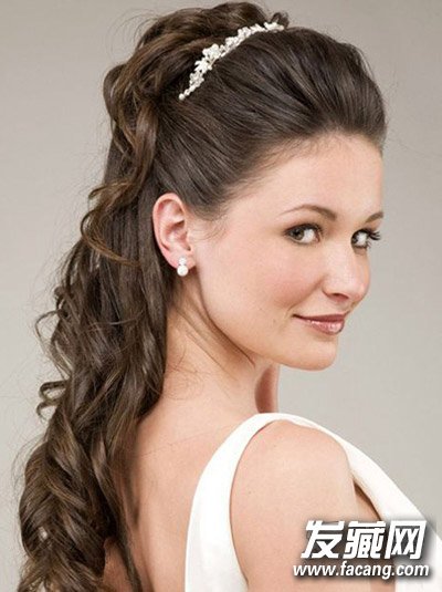 比较传统的公主发,蓬松的波浪束卷发,展现希腊女神般的高贵典雅气质,美丽迷人。