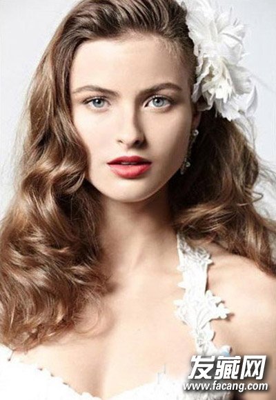 复古的大波浪应该算是最为常见的,如果想要一场户外的婚礼,或者在海边的婚礼,那么复古的大波浪就是最为理想的选择,一头迷人的大波浪卷发,加上耳边妆点得花朵发饰,不仅优雅迷人,而且绝对可以衬托户外婚礼随意浪漫的气氛。