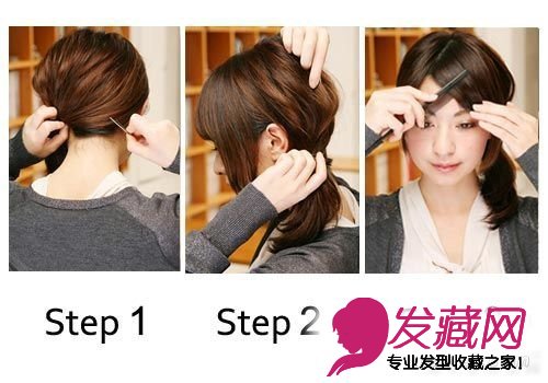 step3.最后调剂,将刘海梳顺,发尾向前形成弧度。这个乖巧可爱的发明就完成了。
