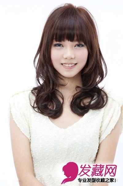 圆脸的女生若是想留齐眉刘海,记得长度不要低于眼睛,在眉毛上下是最佳的长度,能显得脸部更小,如果刘海过长会让脸部从颧骨开始变得很圆。