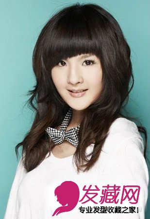 很适合圆脸的MM哦!厚重的微卷侧分刘海能从视觉上缩小脸部面积,而两颊两侧向内微卷的蓬松发丝也有修饰圆脸的作用哦。