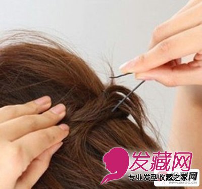 发型设计步骤三:将两边编好的麻花辫绕到后脑勺,缠绕在一起,并用发卡固定。