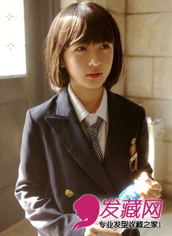 显得脸型更加小巧精致,微微凌乱的发丝更添清纯可爱,很适合学生MM们。