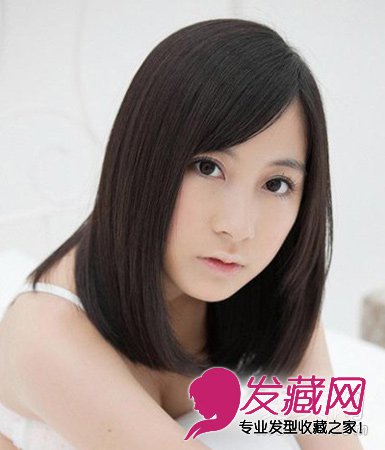 小编点评:黑色的柔顺中短发给人感觉非常清纯淡雅的感觉,斜分的刘海更添一丝甜美可爱,修剪得十分整齐的发尾给人感觉有着学院女生的活泼开朗。非常减龄的一款发型