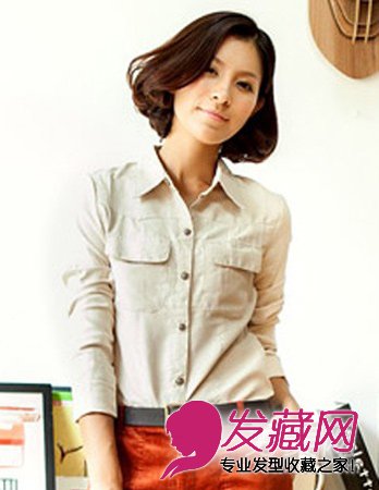 小编点评:中分的八字形刘海可以拉高颧骨,遮掩两颊的肉肉,更好的修饰脸型,内扣的发尾给人感觉更加知性优雅,非常适合时尚潮流的OL们。