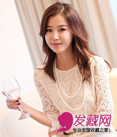 小编点评:八字形的斜分长刘海显得非常柔美知性,还可以拉高颧骨显得五官更加立体。微卷的长发随意的披在肩头非常优雅从容。
