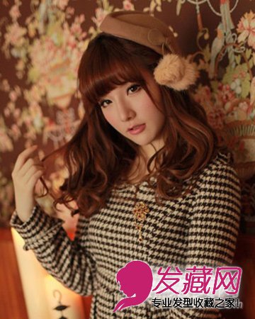 烫上大卷,在微微拨乱,显得更加自然随意,戴上驼色的贝蕾帽更是俏皮可爱。