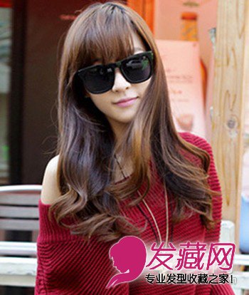 小编点评:披肩的长发在发尾烫上梨花大卷给人感觉甜美可爱,斜分的刘海更是柔美淑女们的最爱,非常简单但是很有气质的一款发型。