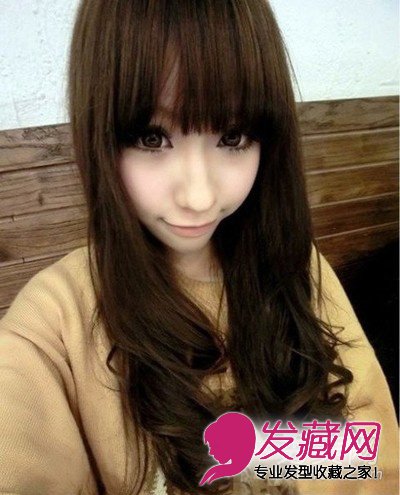 齐刘海的长卷发 圆脸也能变为瓜子脸