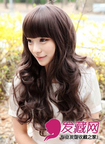 齐刘海的长卷发 螺旋长卷发修饰大脸圆脸