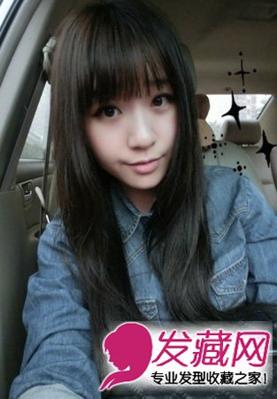 肉圆脸什么发型好看 非常清纯的齐刘海长直发(2)