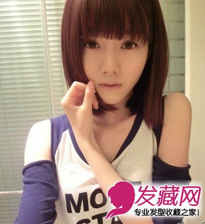 肉圆脸什么发型好看 非常清纯的齐刘海长直发(5)