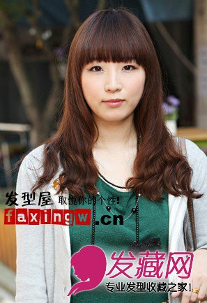 齐刘海的微卷发,可爱又显嫩,刘海配合脸颊的秀发打造精致的小圆脸,微微卷的发尾随性在肩上,优雅有气质。熟女首选的一款。