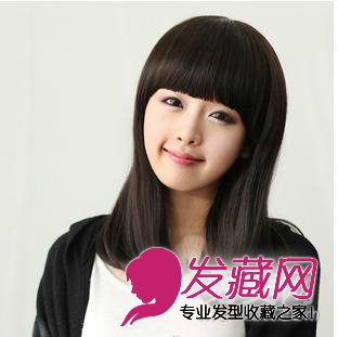 ,齐刘海的中长发,乌黑的发色。一切都显的那么的自然,很适合圆脸的女生哦。