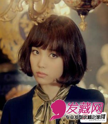 这是圆脸女生适合的发型,黑褐色的色泽,碎发式的齐刘海,做出适度的蓬松感,让脸部轮廓分明凹凸有致,让你不再受圆脸的困扰,女生们还是赶快行动起来吧。