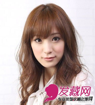 将碎发、层次与蓬松感完美的结合,不禁将气质完美提升。留出的碎发斜刘海有效的突出了女生甜美可人,搭配上深棕色的