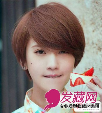 杨丞琳的这款短发干净利落,厚重的斜刘海巧妙的遮住了过宽的额头,很好的修饰出迷人的小脸,加上栗色的