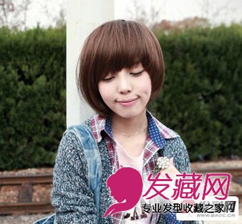这款酷似波波头的短发发型,正好包裹住脸型起到修饰大脸庞的效果,加上流行的齐刘海,可爱甜美中增添了成熟的时尚感。