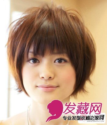 将僵硬的方形脸变为可爱的圆脸,略微蓬松的发丝柔顺的包裹脸颊,打造出圆润的头型,显得甜美可爱,碎剪的齐刘海更增俏皮动人。