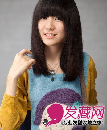 月牙弧度的齐刘海非常贴合脸型,给人感觉甜美可爱,修剪得非常整齐的发尾更是干净利落,黑色的自然发色清新淡雅,有着学院女生的纯真朴实,非常适合想要减龄的MM们。