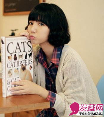 蛋卷头在是非常受韩国MM们喜爱的,这一款短发的蛋卷头非常甜美可爱,蛋卷头又具有非常好的修颜功效。纯黑的发色尽显青春与朝气,加上齐刘海的造型,很好的将脸型拉长,大圆脸的女生太适合了。