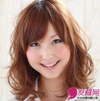侧分的刘海修饰了过宽的额头,齐肩的短发不规则的烫卷,带点蓬松的凌乱美感,修饰了脸型同时给人营造一种头发多的视觉效果,非常适合发量少的圆脸美眉哦!