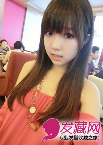 发型,是一款很适合圆脸女生的发型。稀疏自然的齐刘海可以很好的遮挡脸上的肉肉。