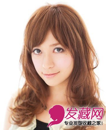 将齐刘海侧分出来后,层次分明的中长烫发显得造型感十足。