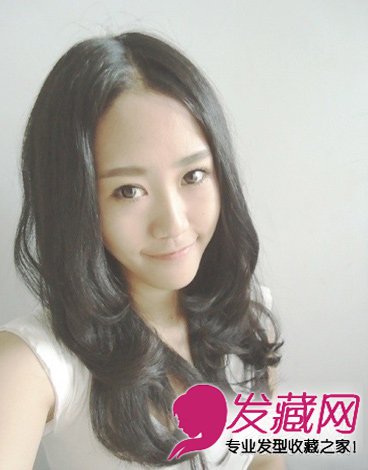 斜刘海的奶茶系卷发发型 修出瓜子脸