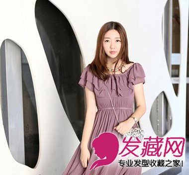 圆脸女生很适合这样的发型,中分长发,微微蜷曲的发丝,紫色荷叶边领口,很有韵味呢