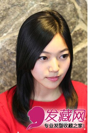 编辑点评:黑色长发自然服帖,侧分刘海整齐的斜搭在脸部,丰盈的层次感立即提升了甜美气质。