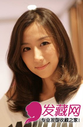 编辑点评:侧分长刘海完美下垂,很好的遮盖了圆脸,柔软卷曲的长发柔美温婉,很好的表现了女性温婉知性的气质。