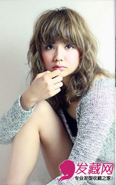 齐刘海与贴脸长卷发搭配达到瘦脸效果,圆脸跟菱形脸比较适合,灰棕色比较衬托肤色,有欧美感觉,加上中波浪卷发打乱有狂野的气息。适合有个性的女生。