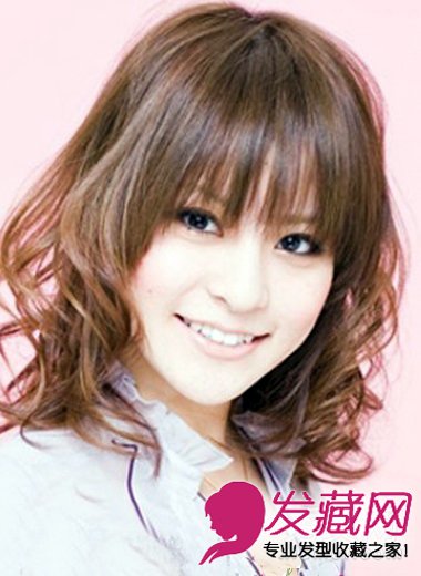 对于肉肉脸的女生来说,把脸颊发丝制造出蓬松感能有效地制造女生小脸效果,轻薄感的细碎齐刘海覆盖微露额头,既给人柔和又不会过于甜美的印象。