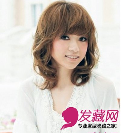 向内卷的收敛卷发比向外的卷发更温柔淑女,十足迷人的女人味,加上前额的齐刘海,显得年轻又可爱,想要小脸的mm值得一试。