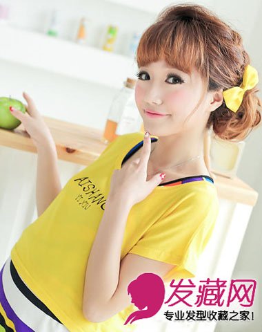 即便是萌萌的少女齐刘海也要告别俗气感,自然蓬松设计,更显时尚俏皮,优雅的韩式编盘发。温婉大气,夏日里增添了几许清凉感,侧边的发髻配上发饰,凸显小圆脸更加娇俏。